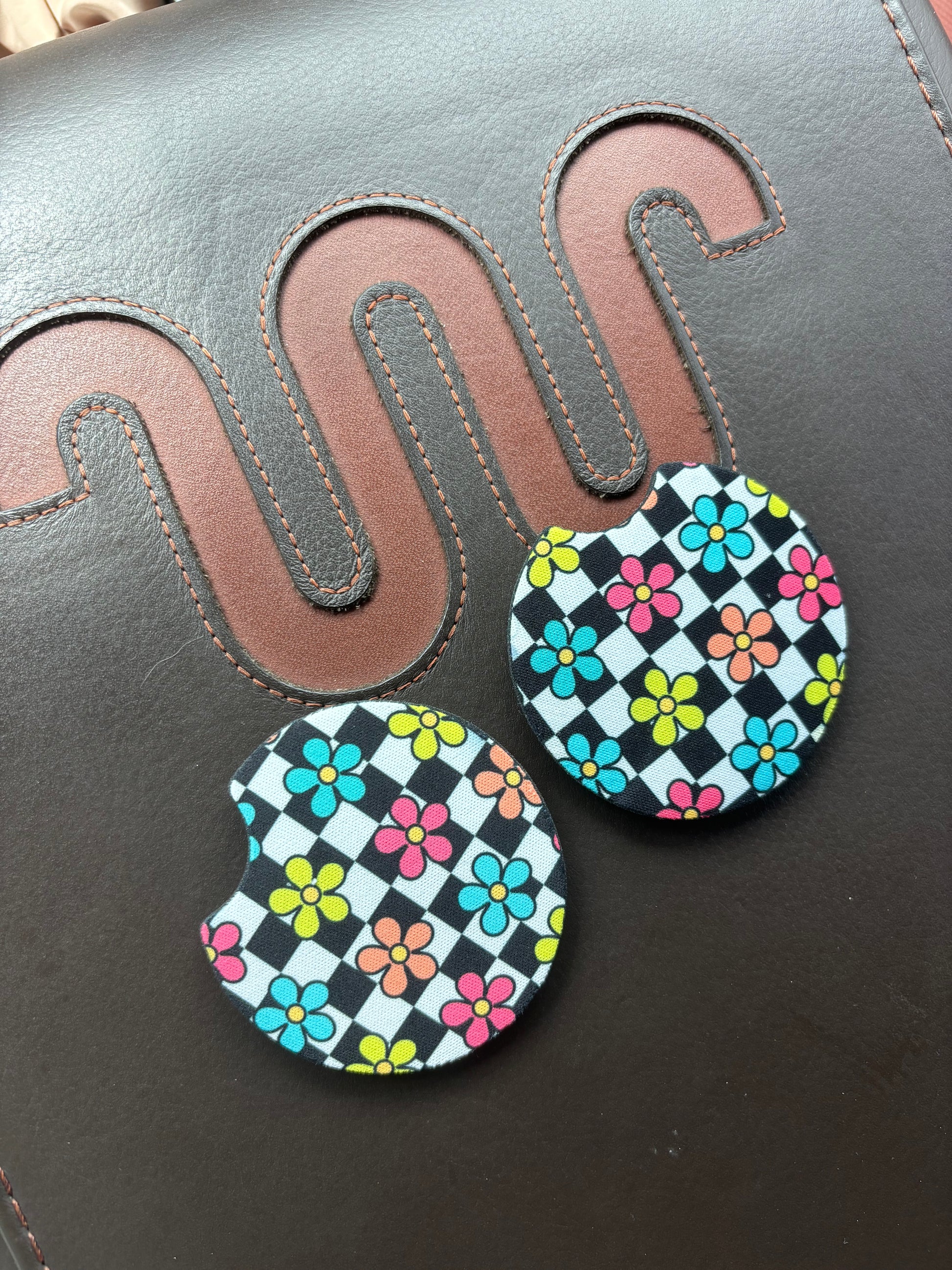 Checkered Flowers Car Coasters